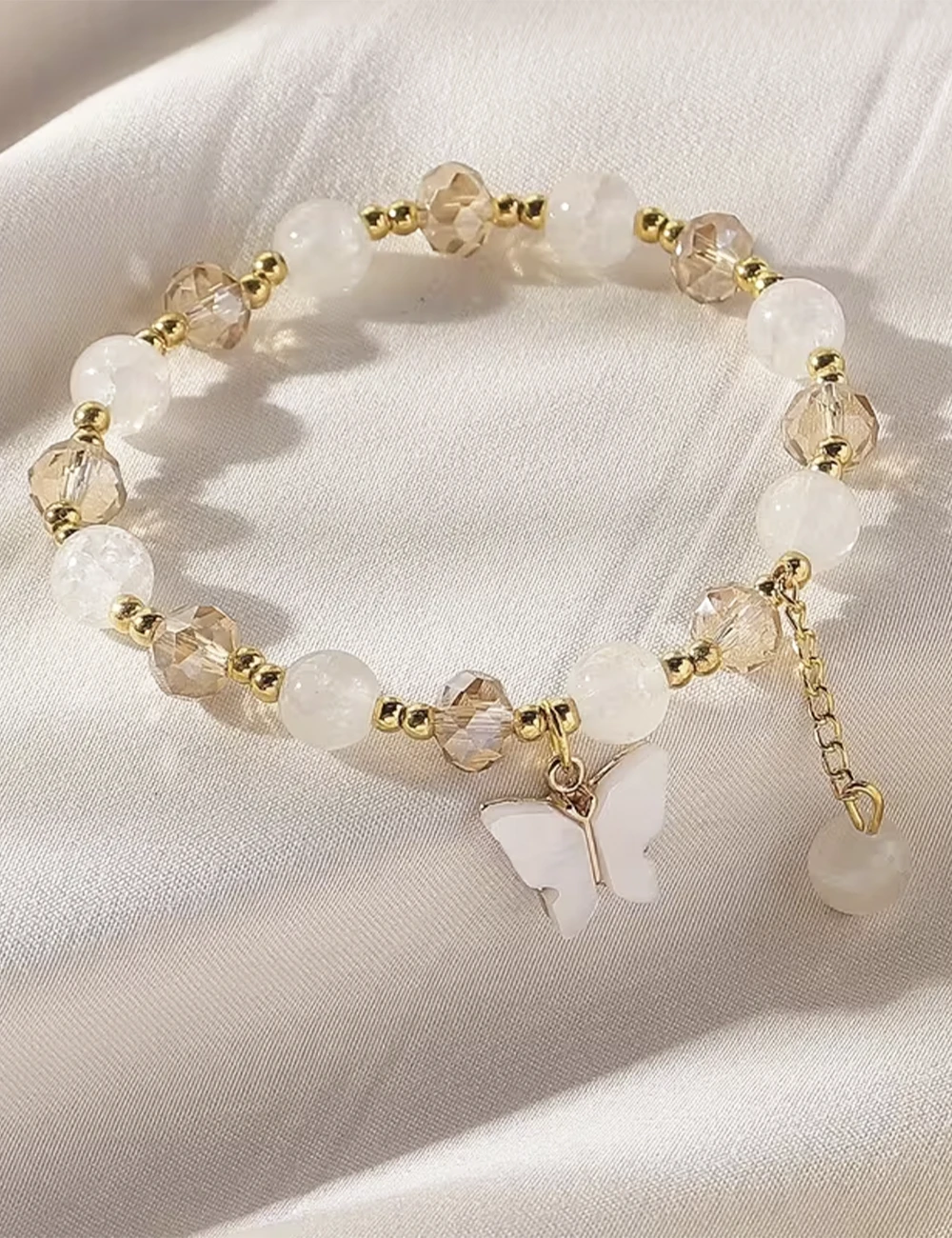 Pulsera elástica de acrílico con encanto de mariposa, inspirada en el estilo Y2K. Su diseño combina cuentas suaves en tonos púrpura y rosa, evocando un aire juvenil y delicado. Ligera, cómoda y flexible, esta joya artesanal complementa atuendos casuales con un toque elegante y moderno. Ideal para mujeres que buscan accesorios originales con temática de animales y un estilo vibrante. Perfecta para uso diario o como detalle distintivo en ocasiones especiales, su elasticidad garantiza un ajuste adaptable y confortable, mientras que su diseño de mariposa simboliza libertad y transformación, haciendo de esta pieza un accesorio único y encantador.
